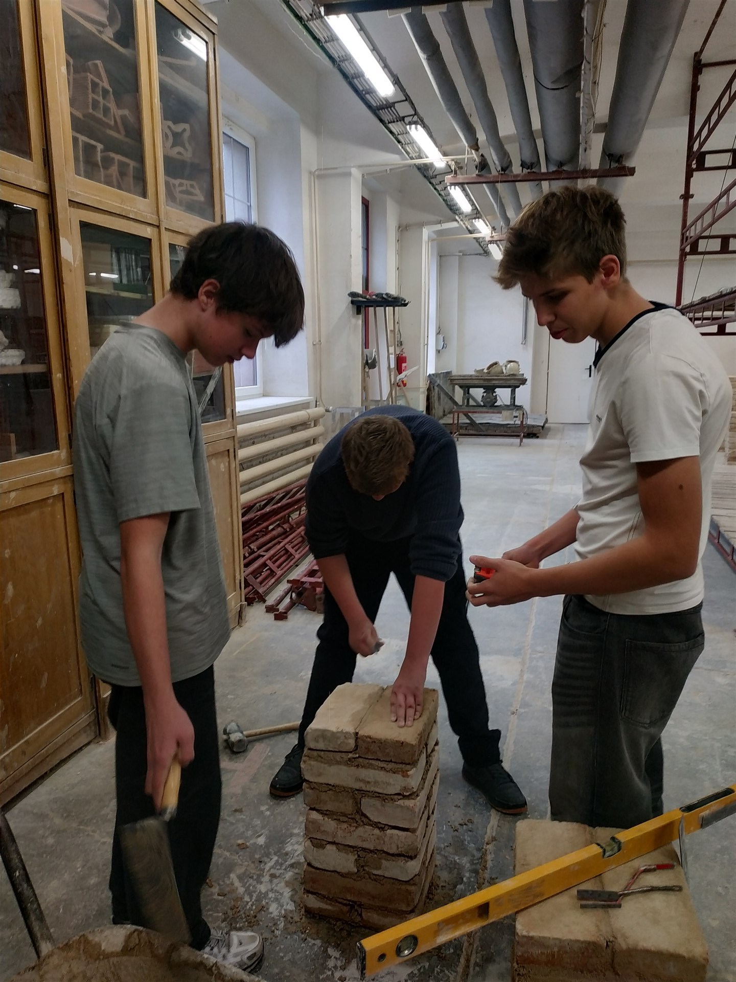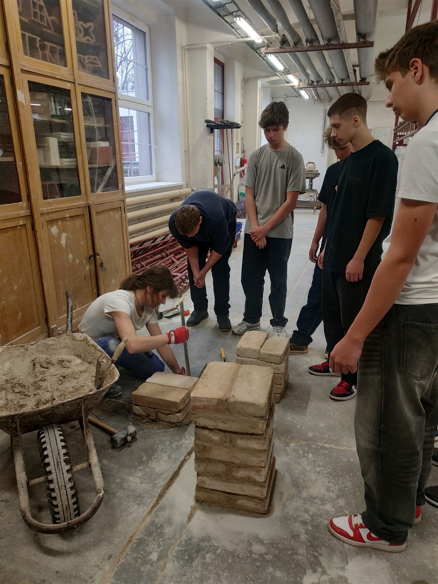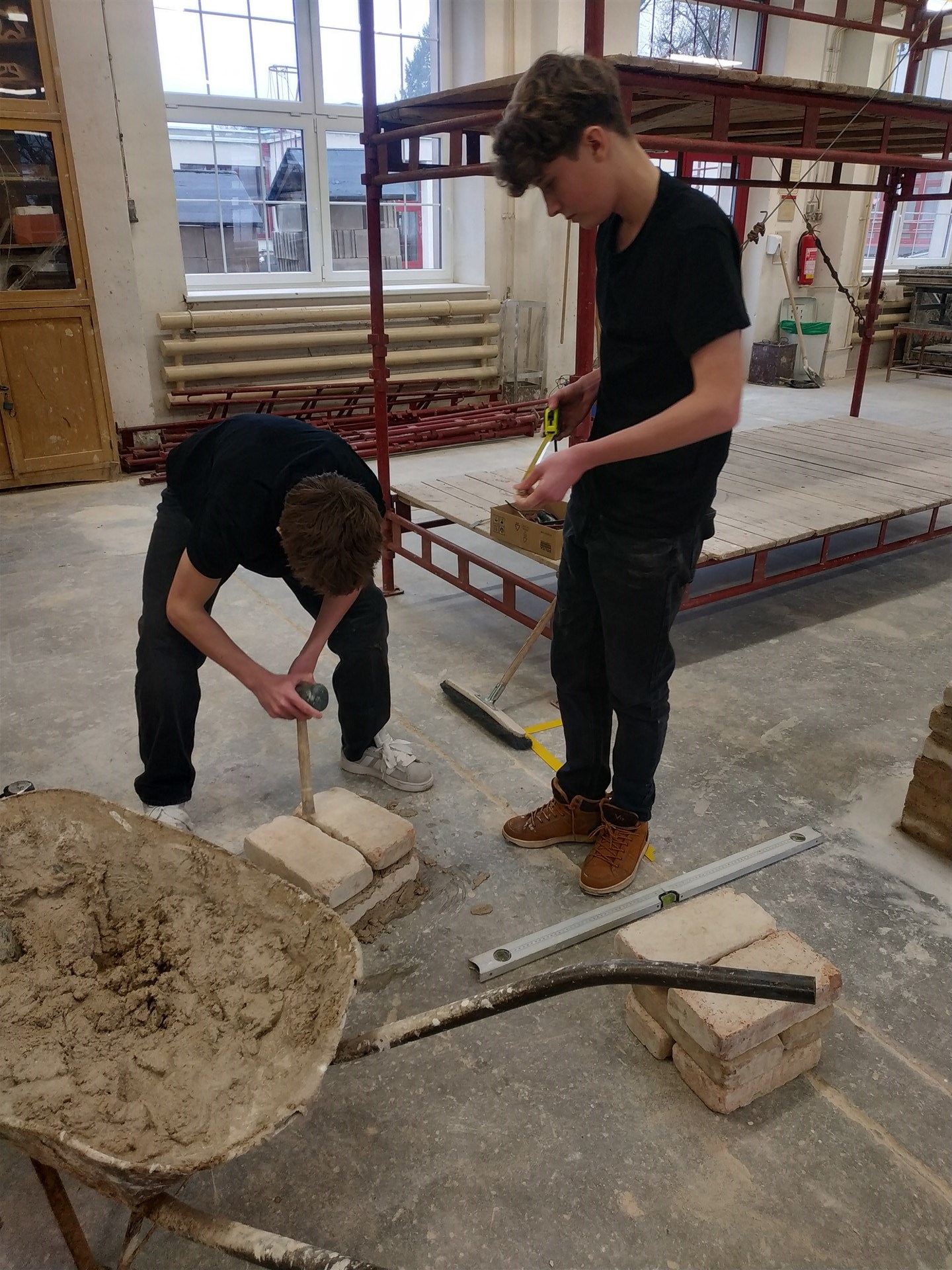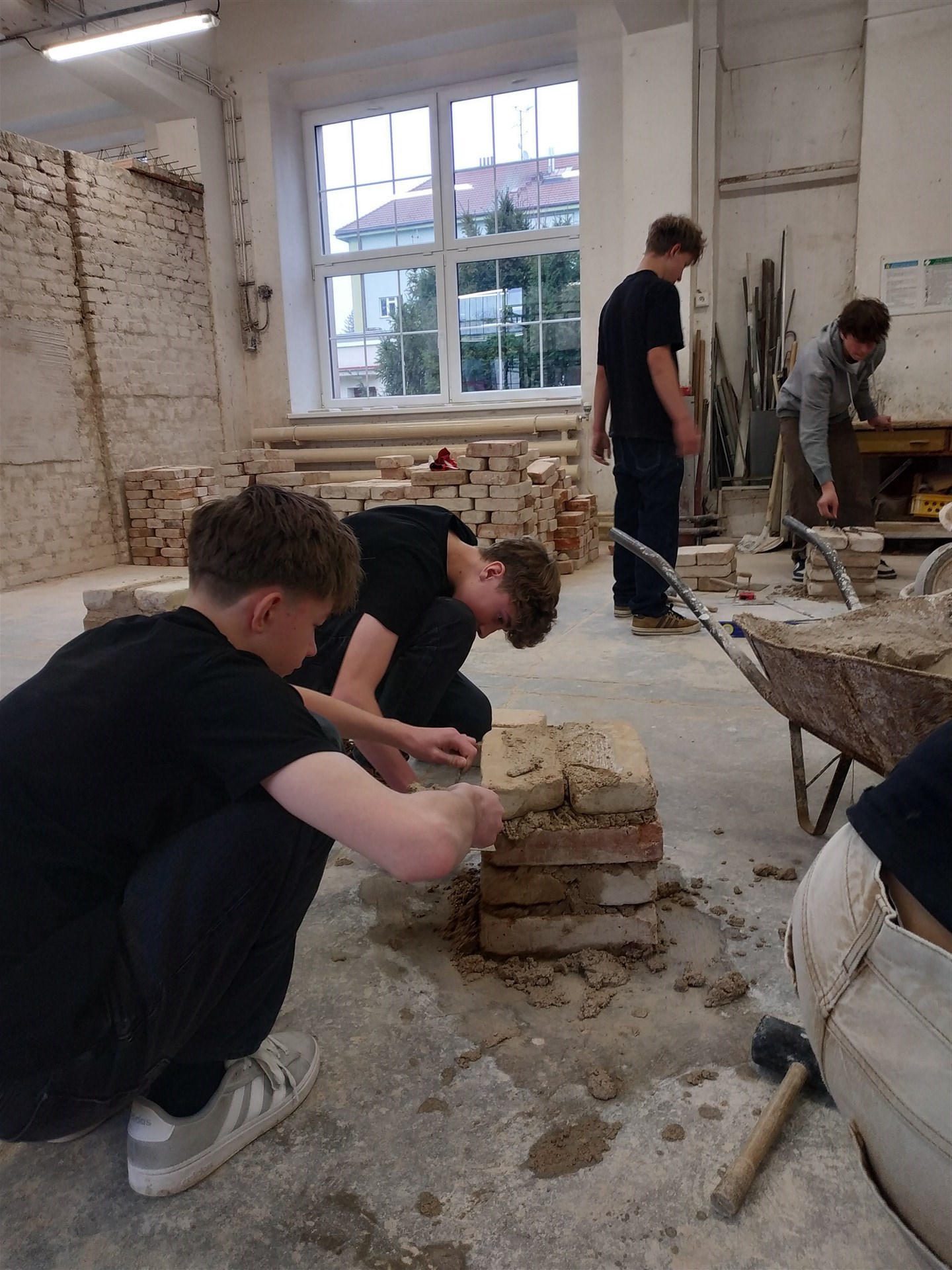 Ve čtvrtek 4.12.2025 se zájemci z devátých tříd mohli podívat do budovy a dílen SPŠ stavební v Hradci Králové. Dozvěděli se informace ke studijním oborům, prohlédli si dílny vzduchotechniky a vyzkoušeli si zednické práce v dílnách stavebnictví. Mnozí drželi zednickou lžíci a gumovou paličku poprvé v ruce 😉 Byla to výzva, se kterou se všichni statečně vypořádali. Poté si v další učebně nasadili brýle s virtuální realitou. Mohli vidět práce studentů v programu Lumion. Tento program si na závěr exkurze v počítačové učebně vyzkoušeli také. Moc děkujeme za možnost prohlédnout si interaktivně SPŠ stavební Hradec Králové. Snad to pomůže našim deváťákům v rozhodování, kam po devítce …