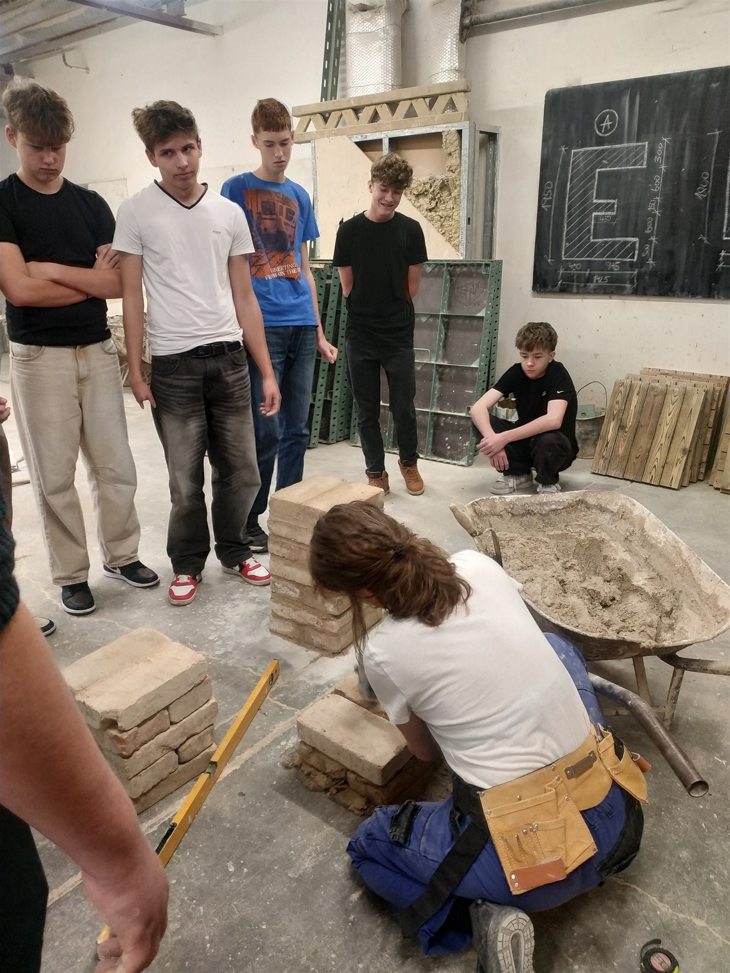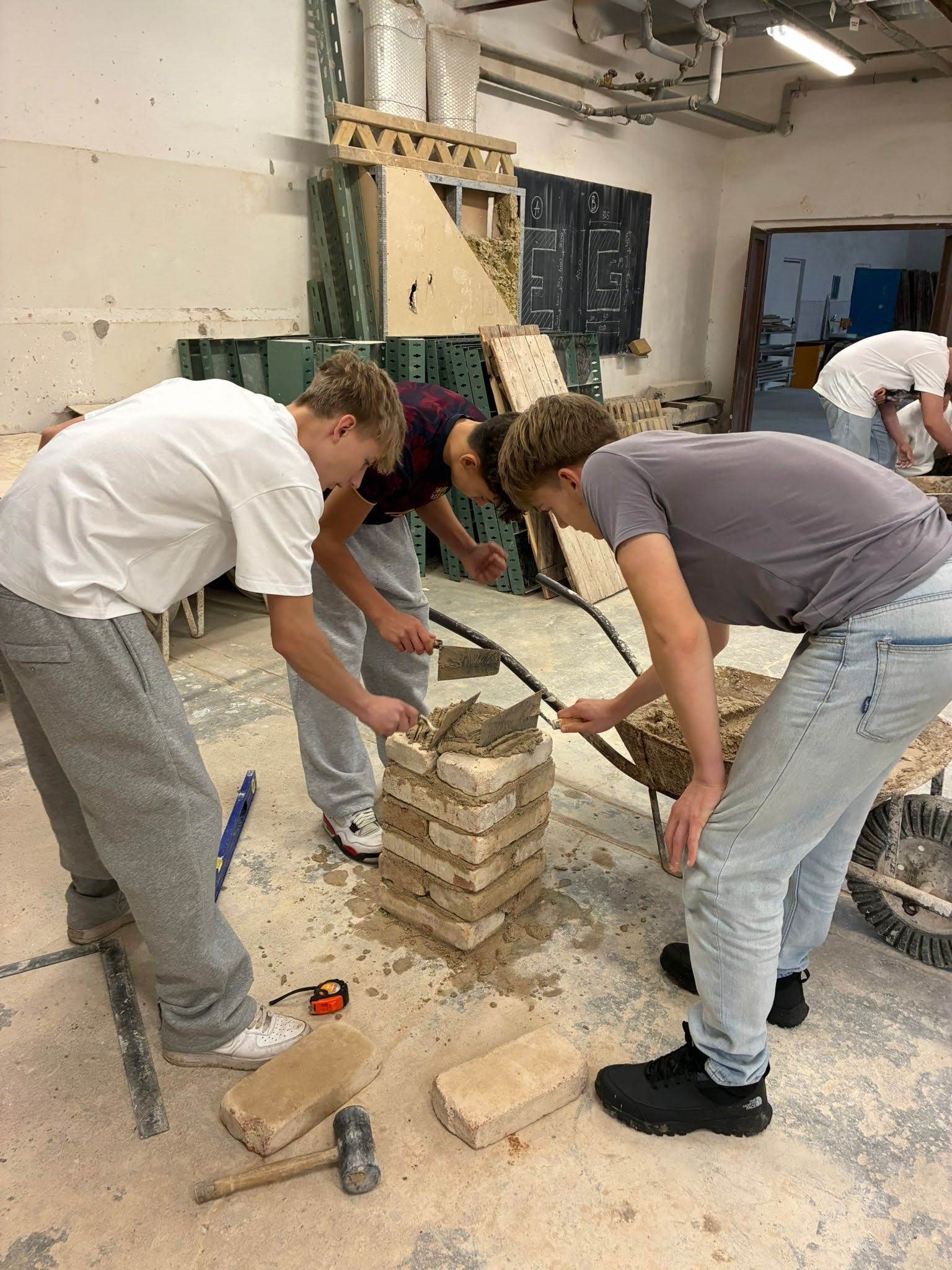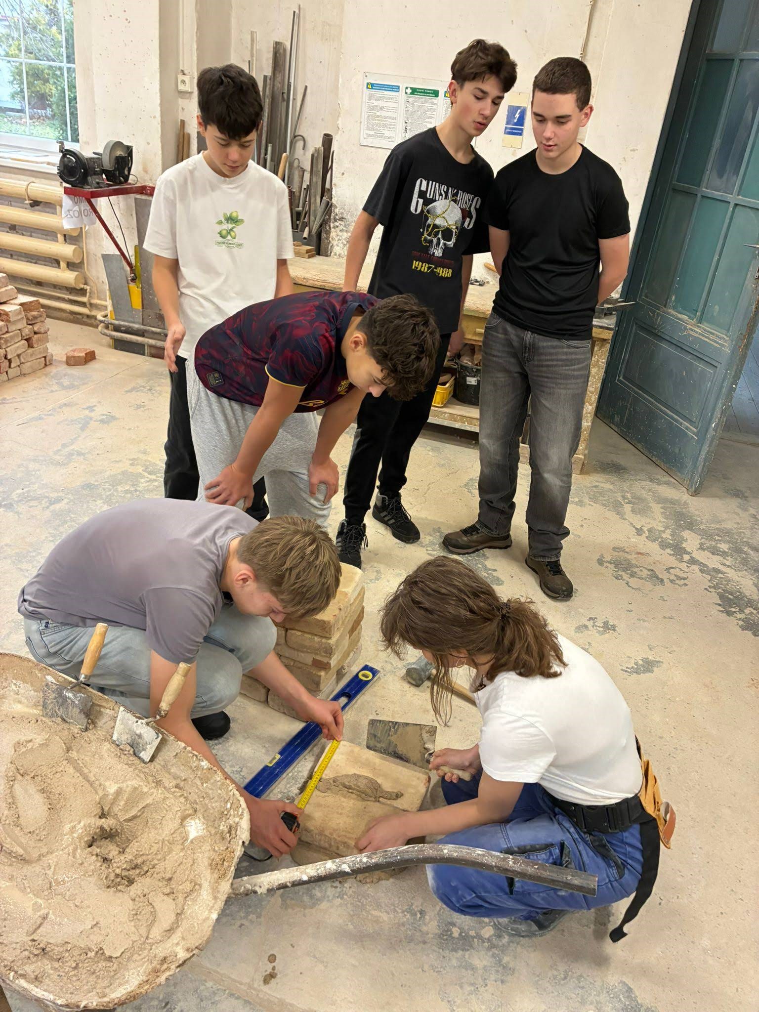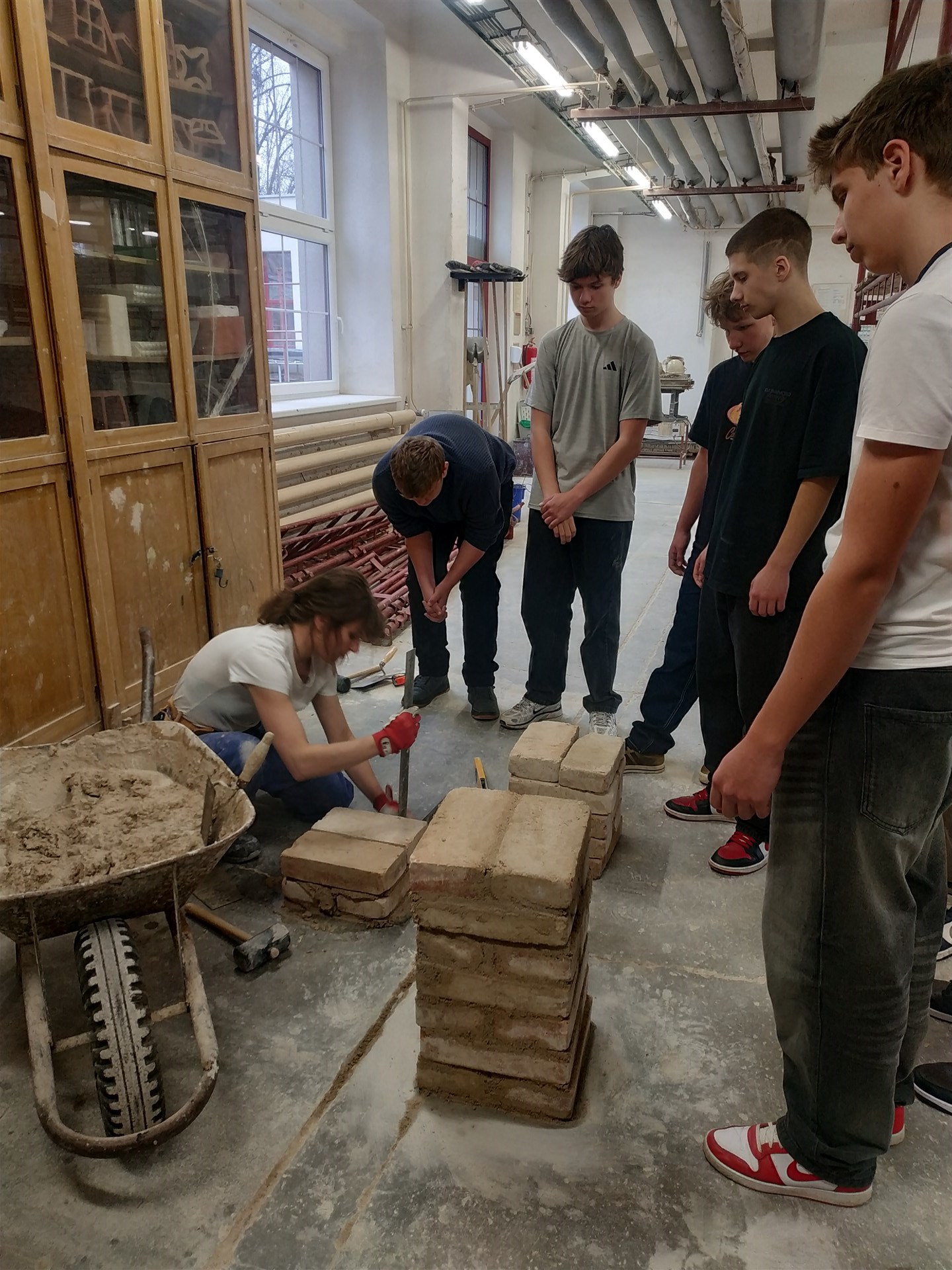Ve čtvrtek 4.12.2025 se zájemci z devátých tříd mohli podívat do budovy a dílen SPŠ stavební v Hradci Králové. Dozvěděli se informace ke studijním oborům, prohlédli si dílny vzduchotechniky a vyzkoušeli si zednické práce v dílnách stavebnictví. Mnozí drželi zednickou lžíci a gumovou paličku poprvé v ruce 😉 Byla to výzva, se kterou se všichni statečně vypořádali. Poté si v další učebně nasadili brýle s virtuální realitou. Mohli vidět práce studentů v programu Lumion. Tento program si na závěr exkurze v počítačové učebně vyzkoušeli také. Moc děkujeme za možnost prohlédnout si interaktivně SPŠ stavební Hradec Králové. Snad to pomůže našim deváťákům v rozhodování, kam po devítce …