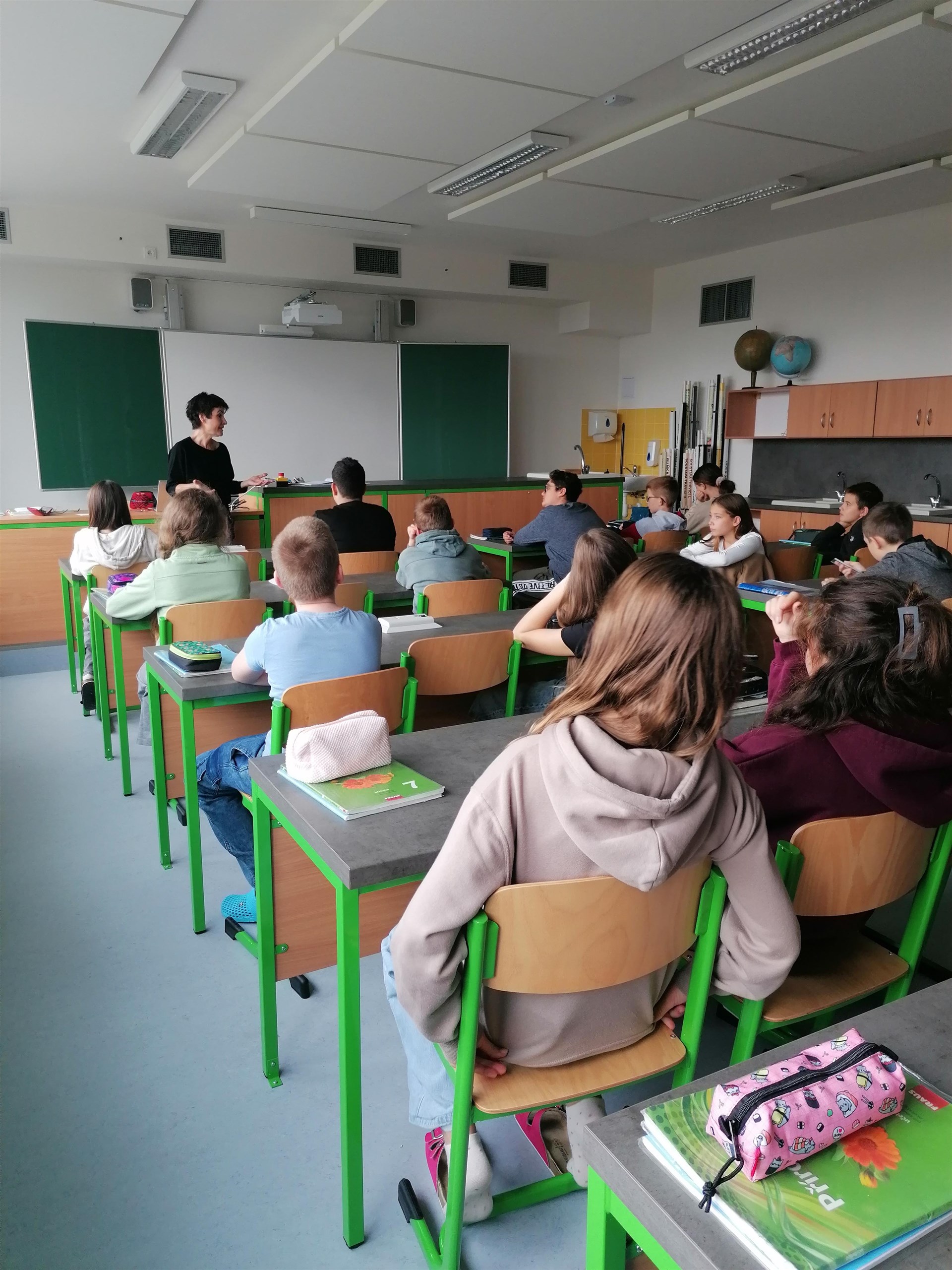 V prvním říjnovém týdnu mohli žáci naší školy začít využívat nové prostory v druhém patře. Celkem zde jsou čtyři nové učebny, které slouží k výuce cizích jazyků, přírodopisu, fyziky a informatiky.