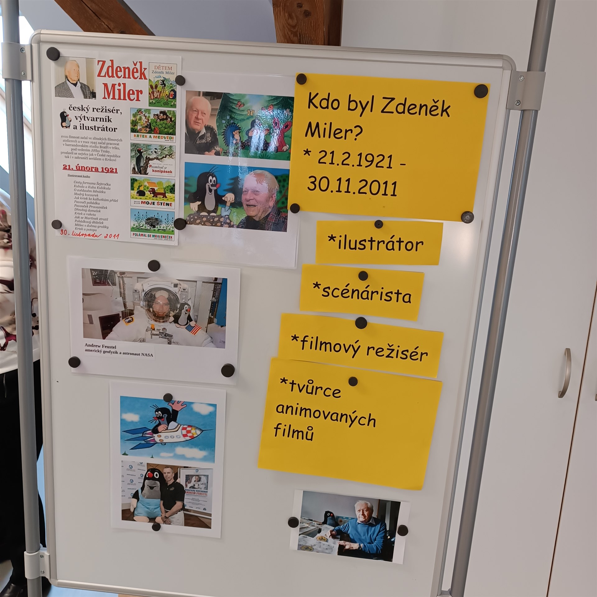3.11. proběhl ve druhých třídách projekt Krtek a jeho kamarádi, jehož součástí byla i beseda o Zdeňku Milerovi, kterou pro nás ve školní knihovně připravila paní učitelka Jana Kopřivová. Ve třídě si pak děti se svými třídními učitelkami zahrály na ilustrátory, plnily různé úkoly s krtkem a jeho kamarády, nebo se seznámily s životem živého krtka. Děti tak hravou formou získaly spoustu zajímavých informací.