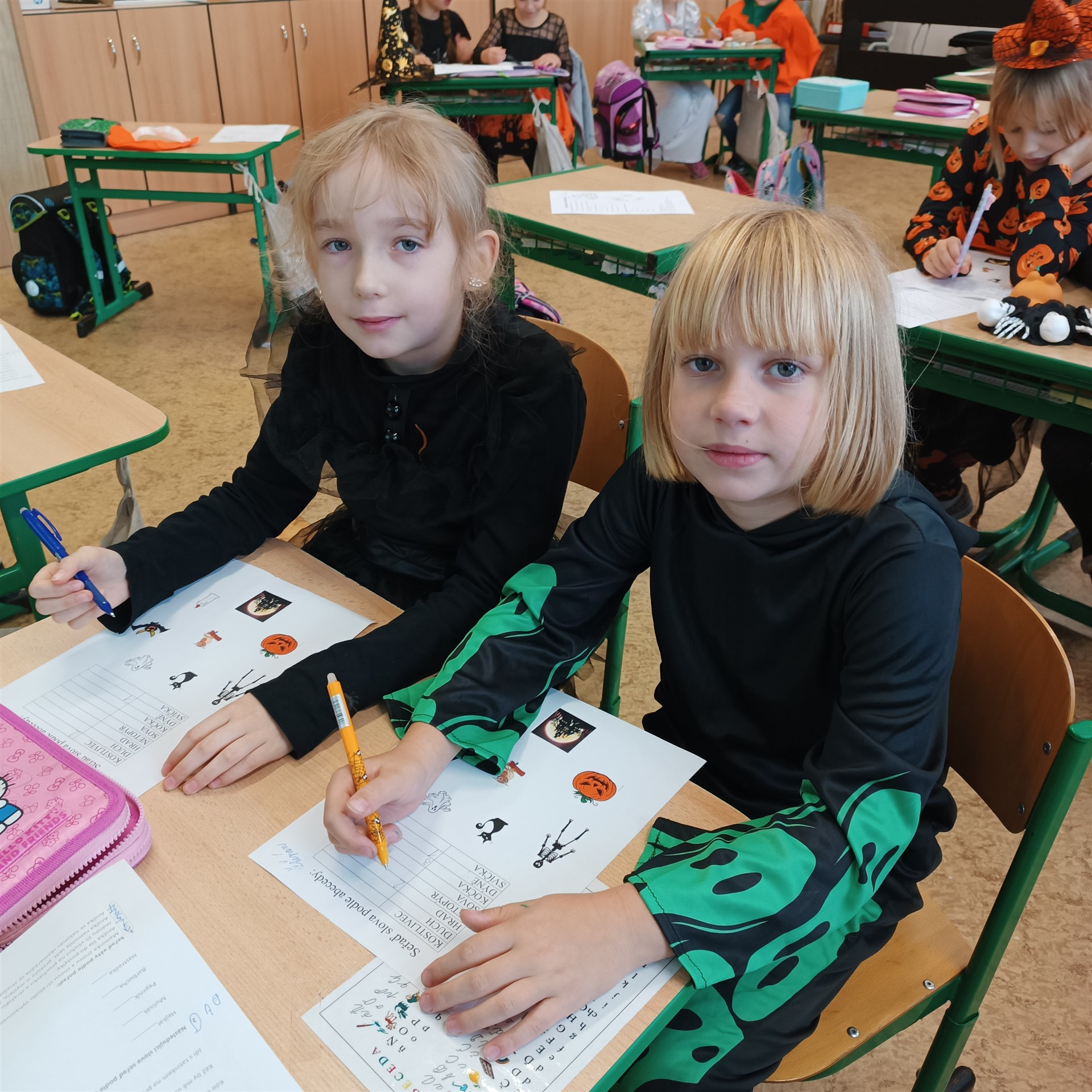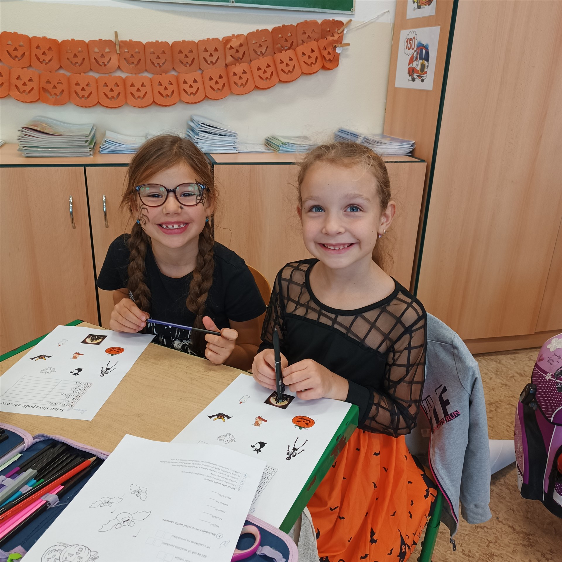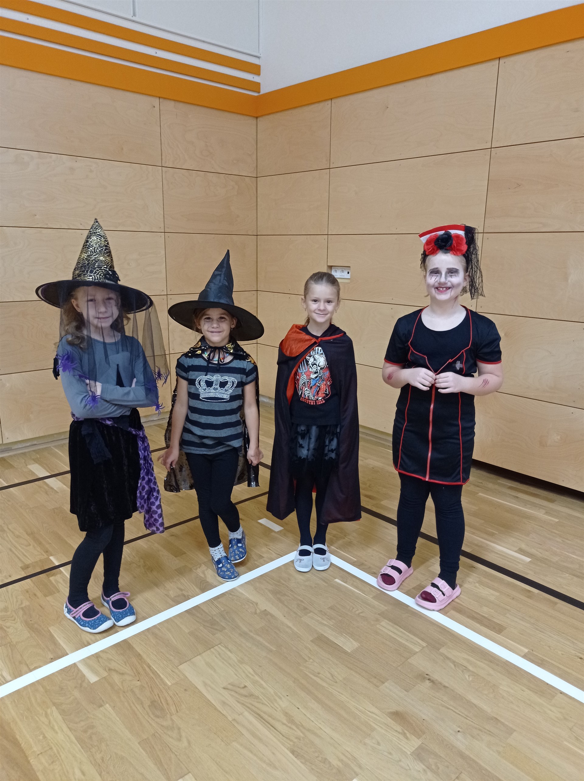 Dne 17. října přišla do druhých tříd samá strašidla. Proto vstup do třídních prostor byl jen pro otrlé a s velikou odvahou. Našli byste tady strašidla, čarodějnice, bílou paní a především také duchy a dýně. Díky šikovným maminkám nikdo netrpěl hlady. Tímto mockrát děkujeme za výbornou svačinku, po které se všechna strašidla olizovala ještě ve družině. Věděli byste, že i strašidla umí počítat, psát, číst, luštit křížovky, malovat, zpívat a dokonce i tancovat? Všechna naše strašidla toto zvládla dokonale a díky tomu obdržela strašidelný svítící náramek a hlavně kouzelné dýňové semínko, které dokáže zázraky. To je ovšem tajemstvím jen pro odměněné.