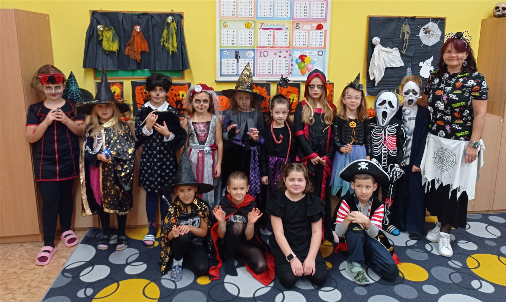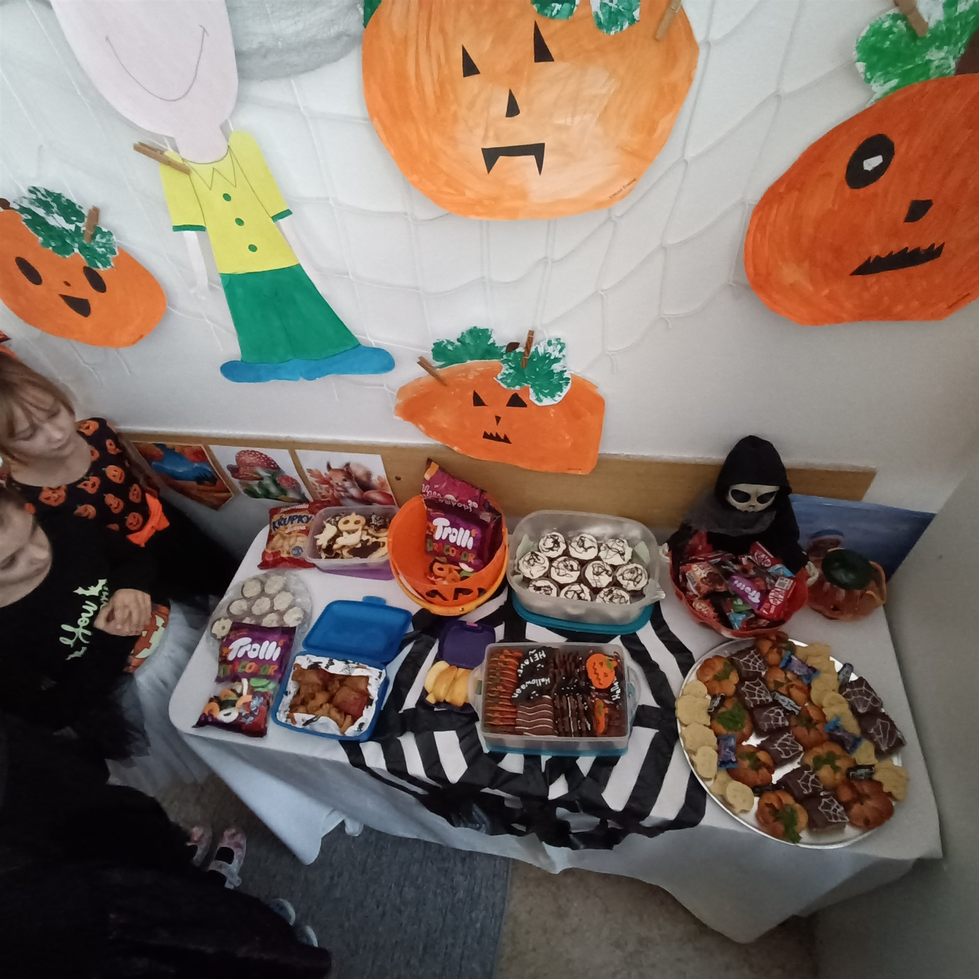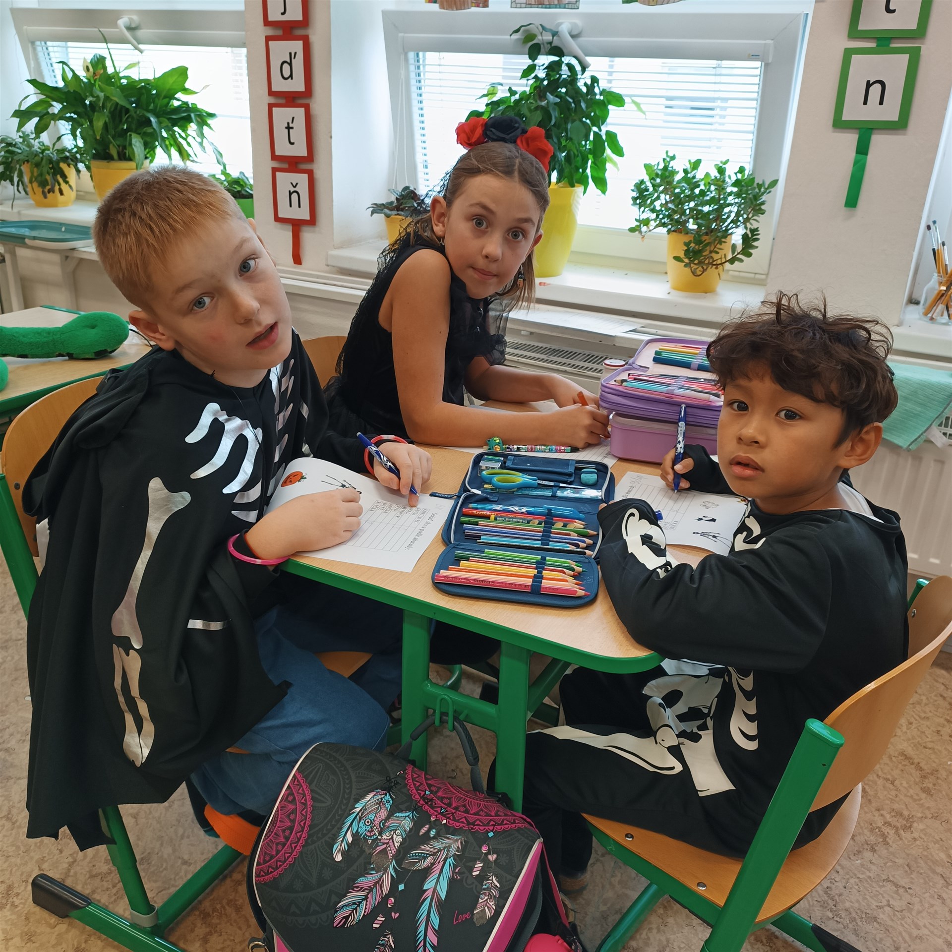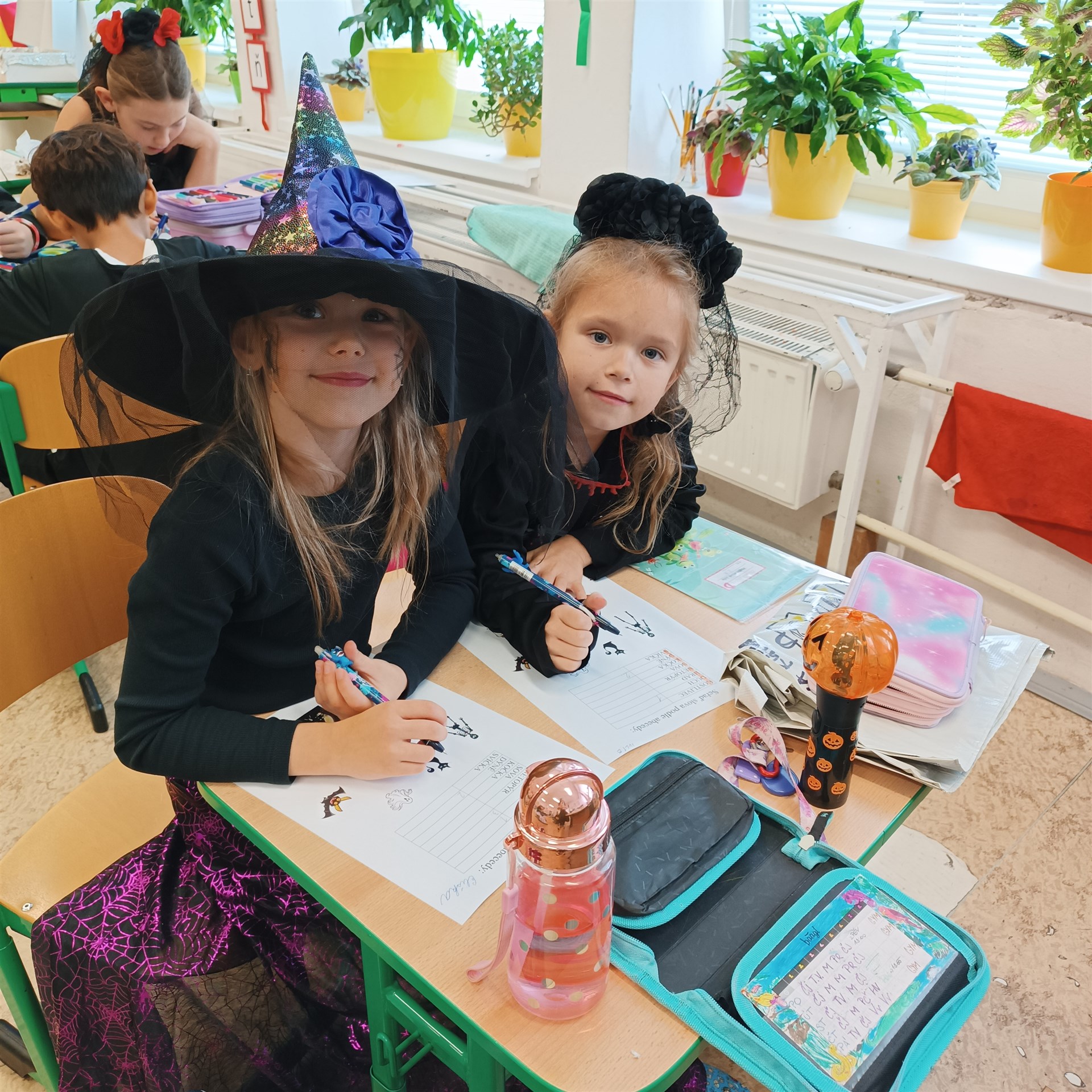 Dne 17. října přišla do druhých tříd samá strašidla. Proto vstup do třídních prostor byl jen pro otrlé a s velikou odvahou. Našli byste tady strašidla, čarodějnice, bílou paní a především také duchy a dýně. Díky šikovným maminkám nikdo netrpěl hlady. Tímto mockrát děkujeme za výbornou svačinku, po které se všechna strašidla olizovala ještě ve družině. Věděli byste, že i strašidla umí počítat, psát, číst, luštit křížovky, malovat, zpívat a dokonce i tancovat? Všechna naše strašidla toto zvládla dokonale a díky tomu obdržela strašidelný svítící náramek a hlavně kouzelné dýňové semínko, které dokáže zázraky. To je ovšem tajemstvím jen pro odměněné.