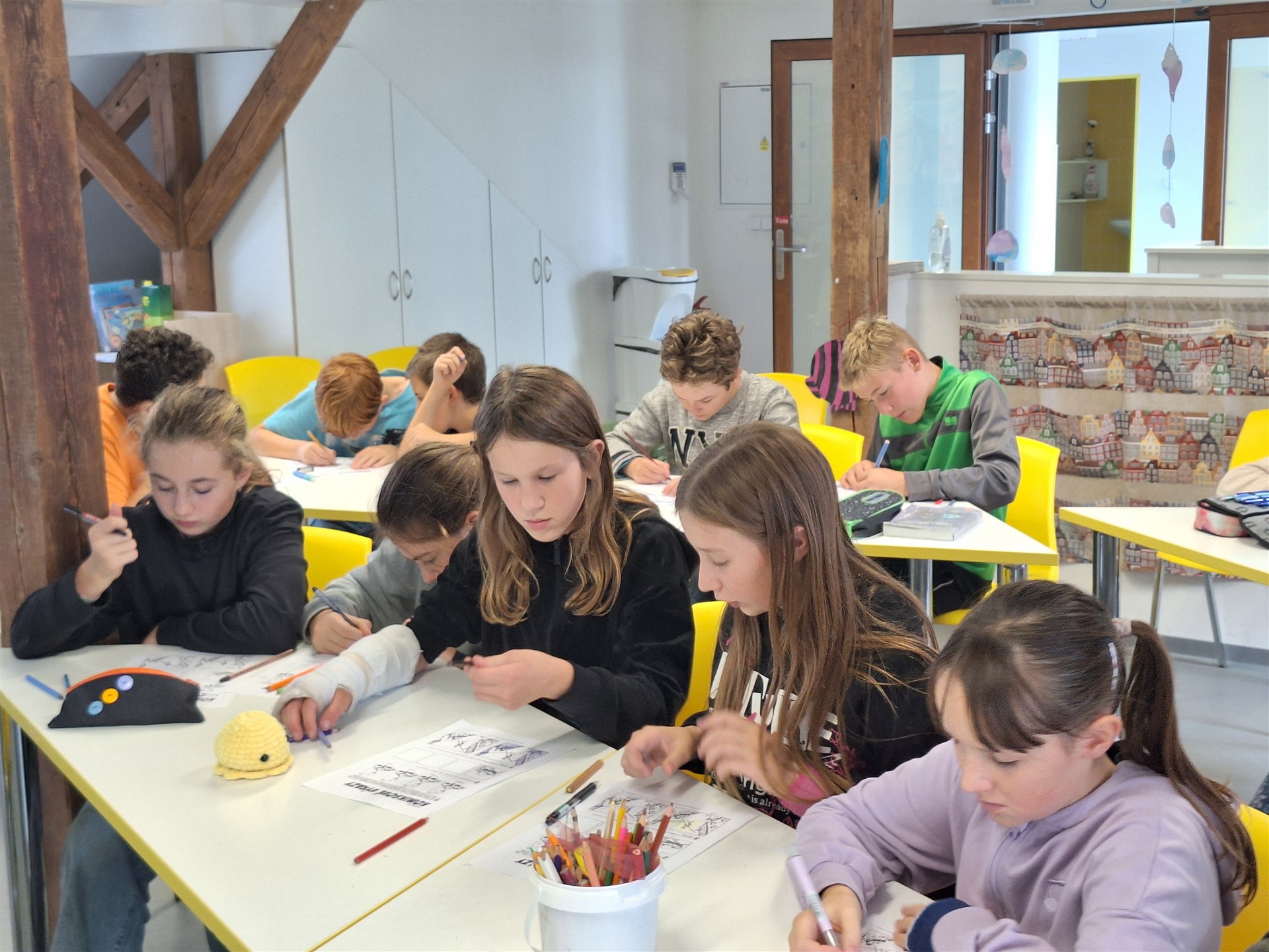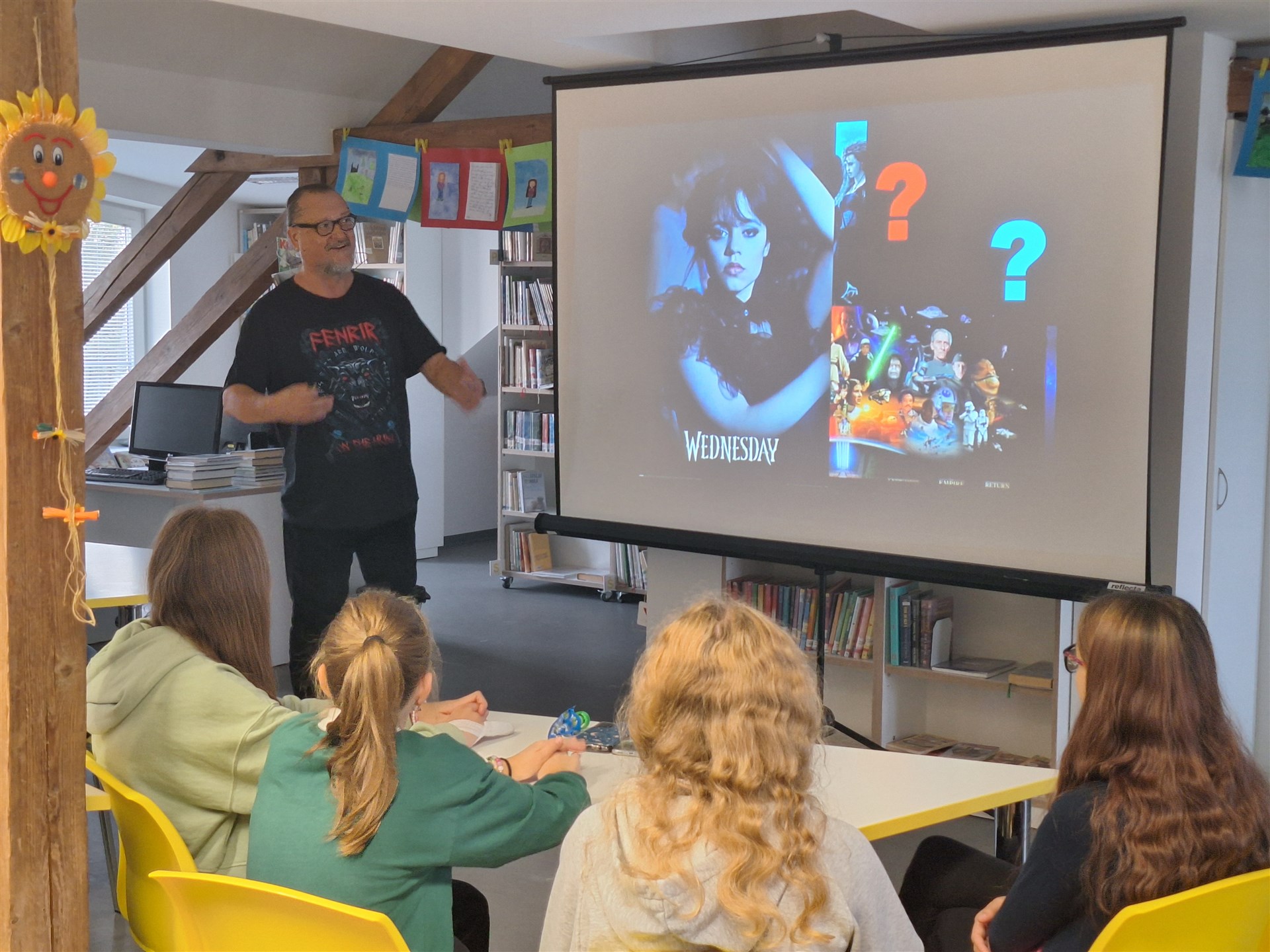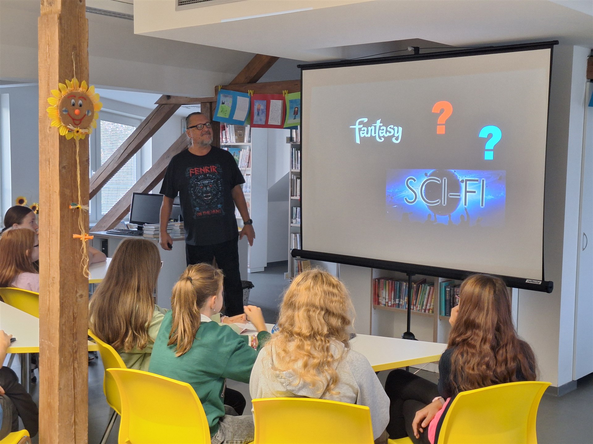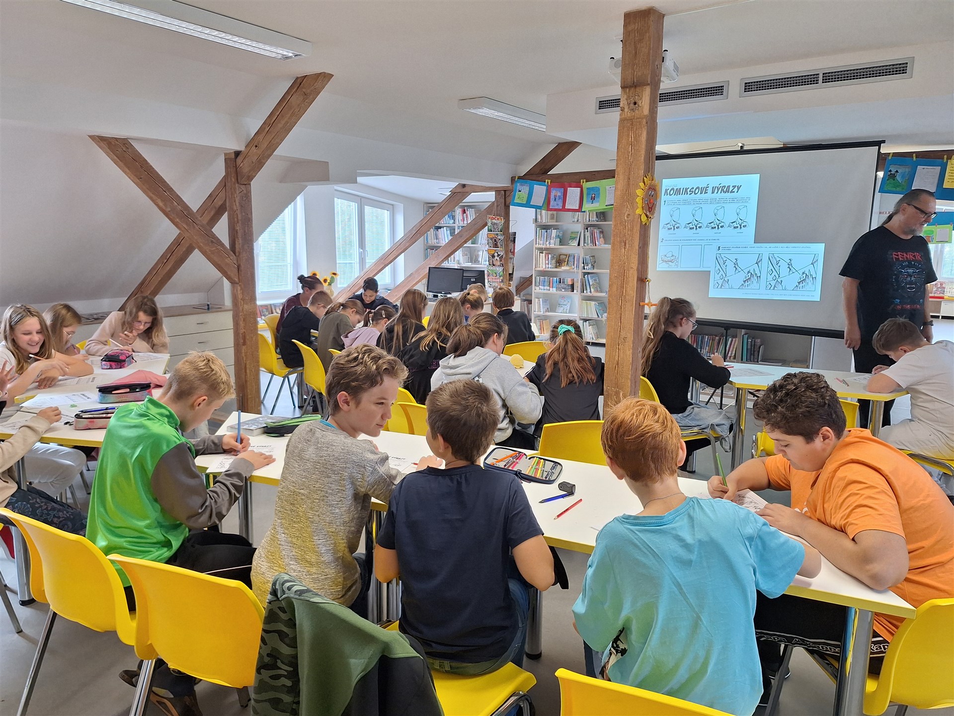Ve čtvrtek 10. října navštívil naši školu pan Jiří Walker Procházka, spisovatel, významný autor komiksů a zároveň znalec a obdivovatel dobrých filmů a knih z oblasti fantasy literatury. S žáky šesté a sedmé třídy se sešli v knihovně na workshopu s názvem Komiksy hravé i dravé. Pan Procházka poutavě a zároveň vtipně seznámil žáky s historií komiksu od starověku až po současnost. Vysvětlil jim komiksová pravidla, komiksovou řeč, využití citoslovcí, seznámil je s různými styly kreslení a zpracování námětů. V závěrečné části si žáci sami vyzkoušeli, jak se komiks vytváří. Jako milý dárek od pana Procházky obdržela knihovna několik komiksových knih.