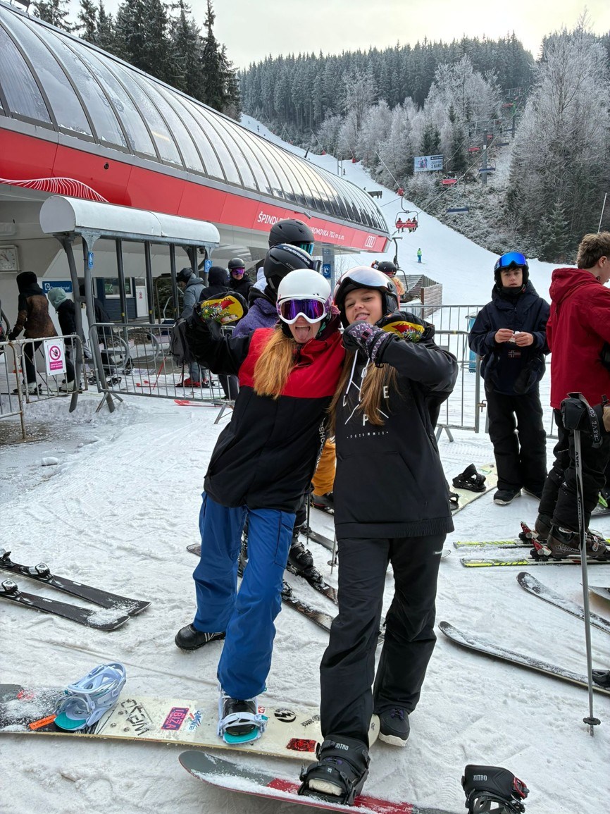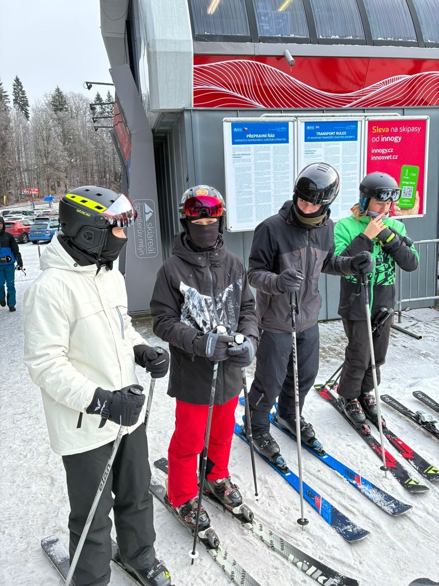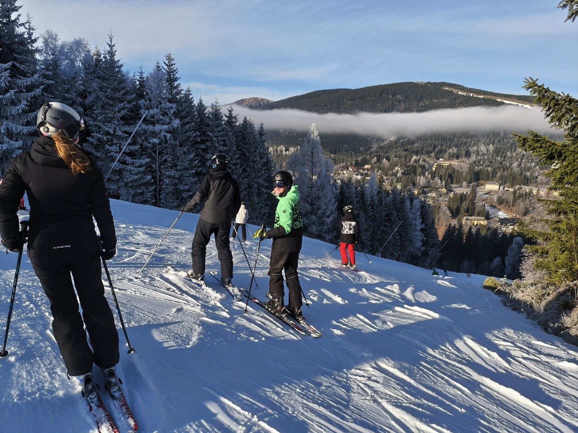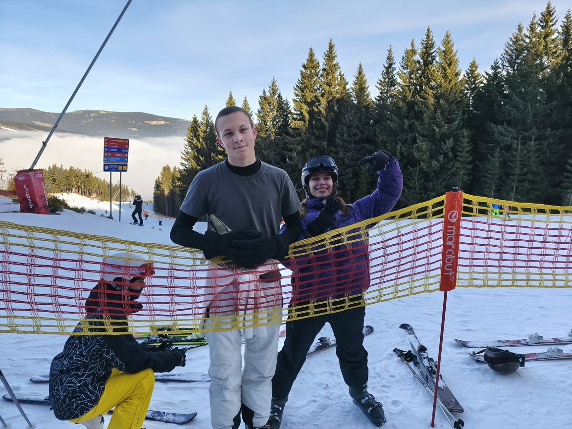 Od 16.prosince do 18.prosince si část deváťáků užila atmosféru vánočního Špindlerova Mlýna. Pracovní název akce byl "After lyžák" 😊.Ubytováni byli pod Medvědínem v maličkém, ale o to útulnějším Hotýlku Diana, kde báječně vařili. Majitel s personálem byli neuvěřitelně vstřícní a milí. I když sněhu nebylo mnoho, od rána do večera brousili na lyžích nebo snowboardu Hromovku, jedinou sjezdovku, která byla v provozu. S úsměvy, dobrou náladou a naprosto vyčerpáni pak opouštěli hory. Vraceli se domů na nejkrásnější čas, čas Vánoc 🎄