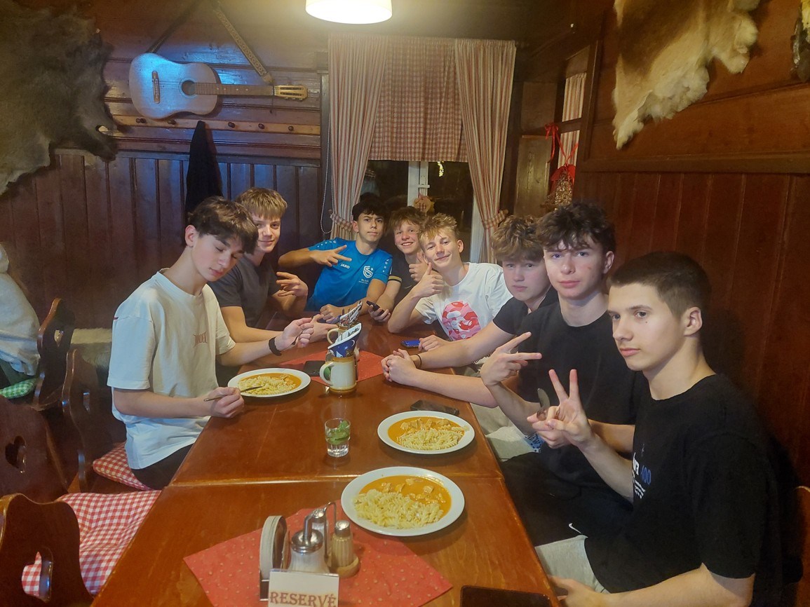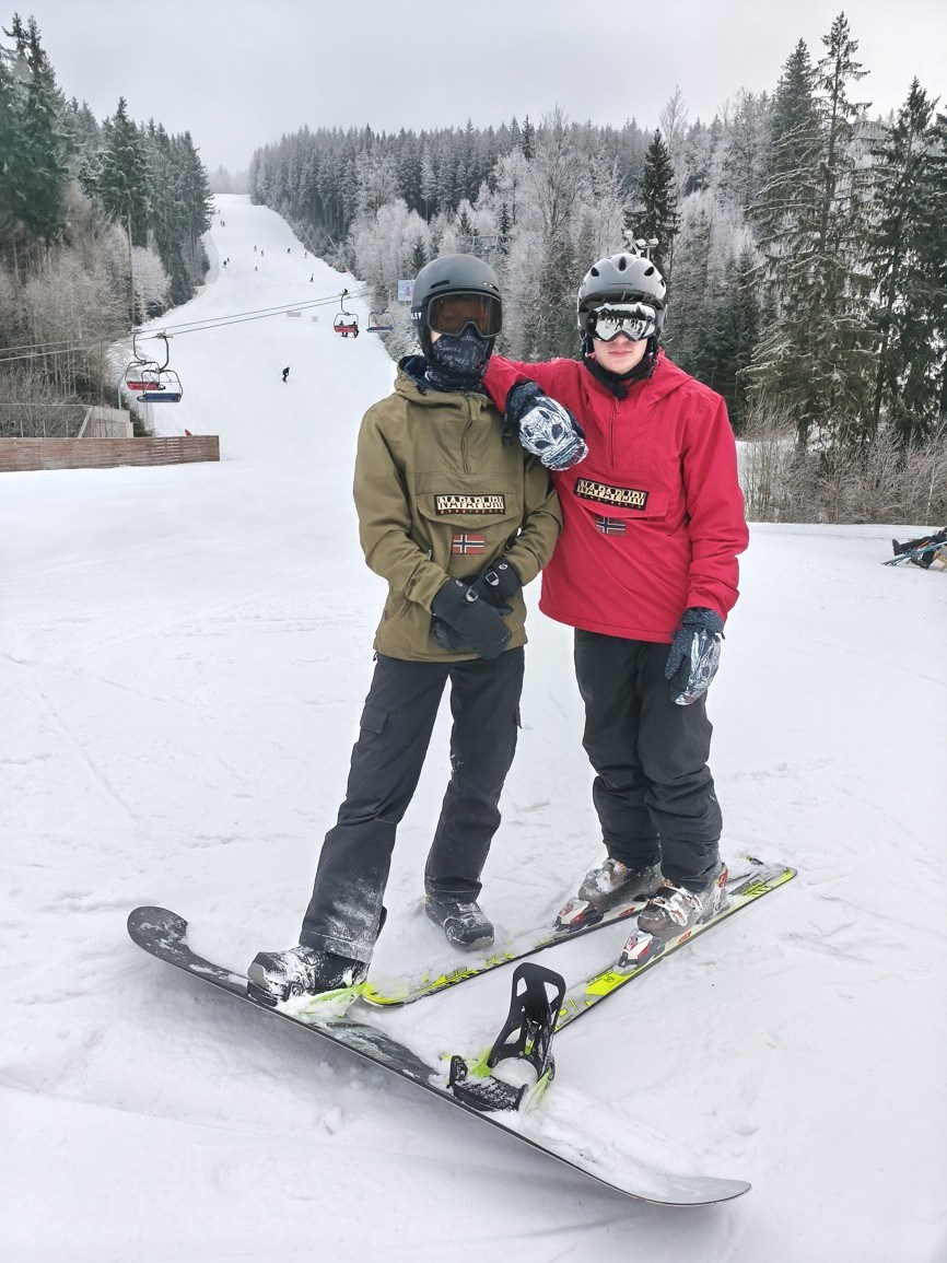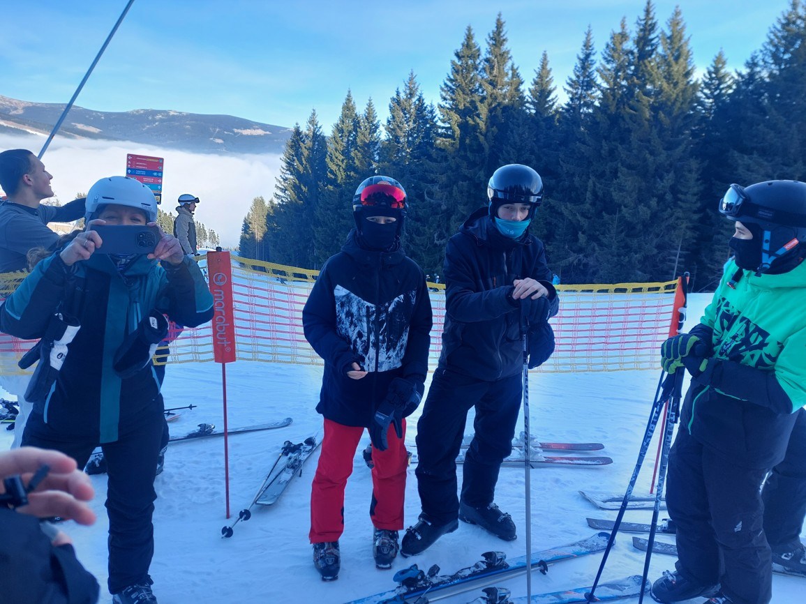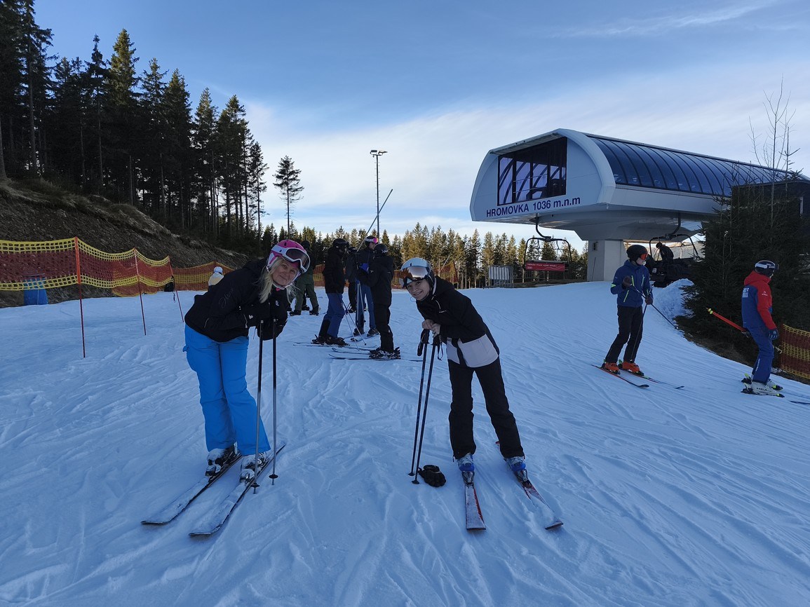 Od 16.prosince do 18.prosince si část deváťáků užila atmosféru vánočního Špindlerova Mlýna. Pracovní název akce byl "After lyžák" 😊.Ubytováni byli pod Medvědínem v maličkém, ale o to útulnějším Hotýlku Diana, kde báječně vařili. Majitel s personálem byli neuvěřitelně vstřícní a milí. I když sněhu nebylo mnoho, od rána do večera brousili na lyžích nebo snowboardu Hromovku, jedinou sjezdovku, která byla v provozu. S úsměvy, dobrou náladou a naprosto vyčerpáni pak opouštěli hory. Vraceli se domů na nejkrásnější čas, čas Vánoc 🎄